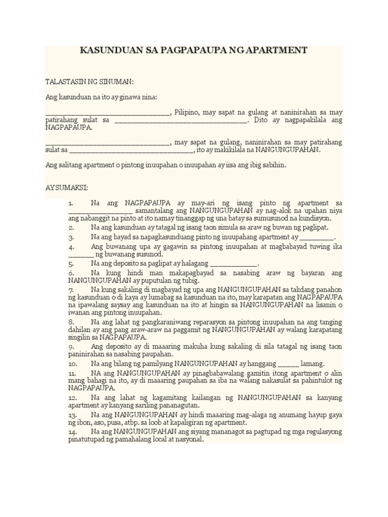 Kasunduan sa pagpapaupa alamin ng lahat na: kasunduan format. This page is about kasunduan sa paupahan,contains kasunduan sa pagpapaupa,kasunduan sa pagpapaupa,kasunduan sa pagpapaupa,kasunduan sa pagpapaupa ng apartment (sample) and more.