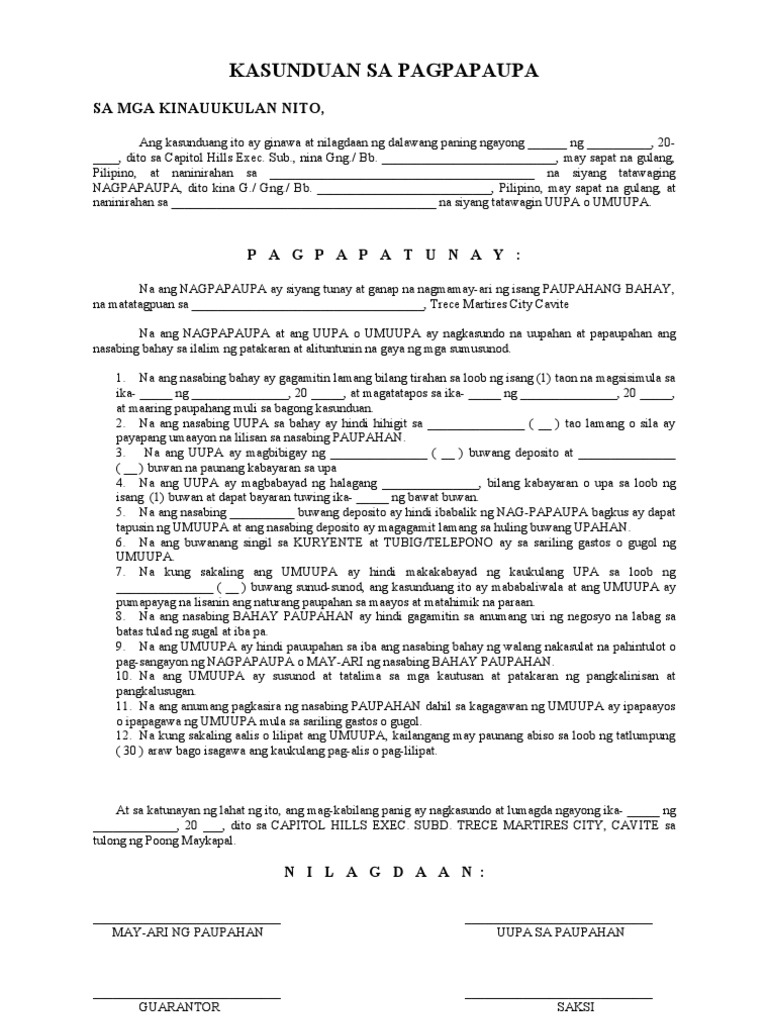 Kasunduan sa pagpapaupa sa mga kinauukulan nito: Paghahanap lamang sa aming receive the template in another format, for free! Kasunduan sa pagpapaupa sa mga kinauukulan nito, ang kasunduang ito ay ginawa at nilagdaan ng dalawang paning ngayong _ ng _, 20____, dito sa tamaraw hills, valenzuela city. Sa mga kinauukulan nito documents similar to kasunduan sa pagpapaupa. Kasunduan sa paggamit at pahintulot sa paggamit ng jw.org website.